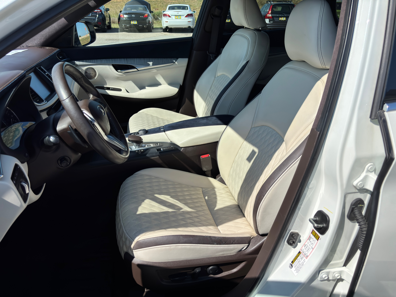 Check out this very sharp 2019 Infiniti QX50 Essential FWD with the 2.0L turbocharged four-cylinder engine and 138k miles! This Infiniti QX50 is a one-owner with very nice features including heated & cooled leather interior, navigation, 360-degree camera, Bose Audio, and much more! This is a beautiful SUV offering good fuel economy and a comfortable ride. Call today to schedule a test drive!