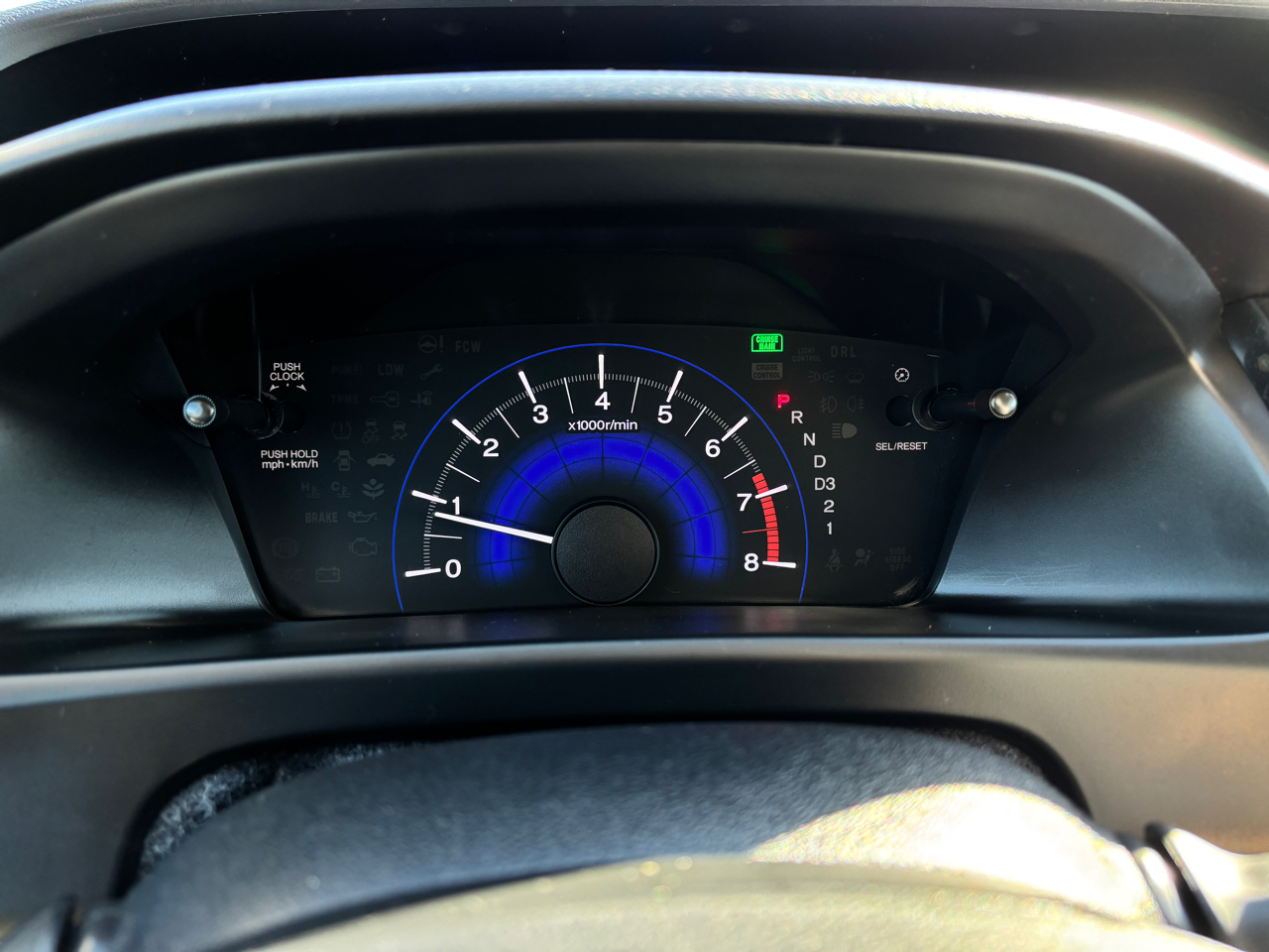 • 2-tier instrument panel w/blue backlit gauges -inc: tachometer