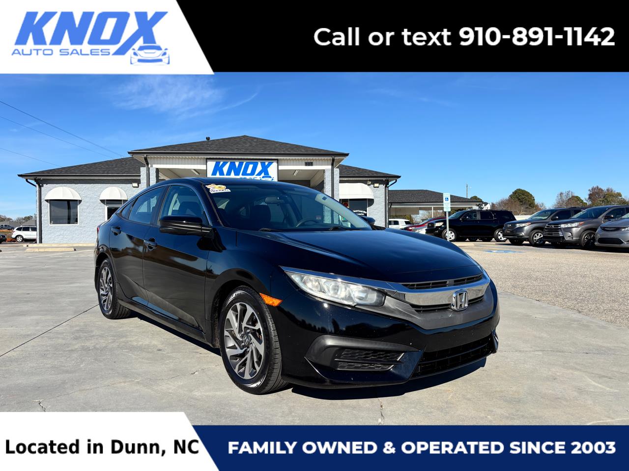 Highly rated on Google and Facebook. Christian-owned, family-operated dealership providing used cars, trucks, and SUVs since 2003. No-pressure sales staff. Free Carfax on all vehicles. Military, first responders, and school staff receive a $250 discount! Next to Exit 73 off I-95 in Dunn, we're an easy drive from Raleigh, Fayetteville, and surrounding areas!