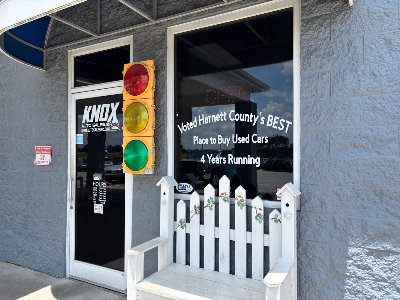 Highly rated on Google and Facebook. Christian-owned, family-operated dealership providing used cars, trucks, and SUVs since 2003. No-pressure sales staff. Free Carfax on all vehicles. Military, first responders, and school staff receive a $250 discount! Next to Exit 73 off I-95 in Dunn, we're an easy drive from Raleigh, Fayetteville, and surrounding areas!